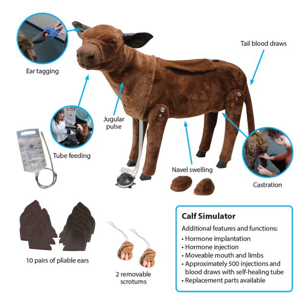 Offrez aux étudiants des occasions pratiques de s’entraîner à résoudre divers problèmes majeurs liés aux veaux avec notre simulateur de veau grandeur nature.