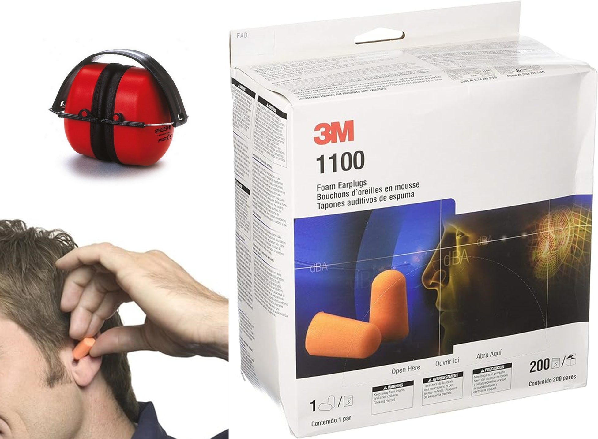 - 1 carton de bouchons d’oreille 3 M avec 200 paires (400 unités - 35 DB)